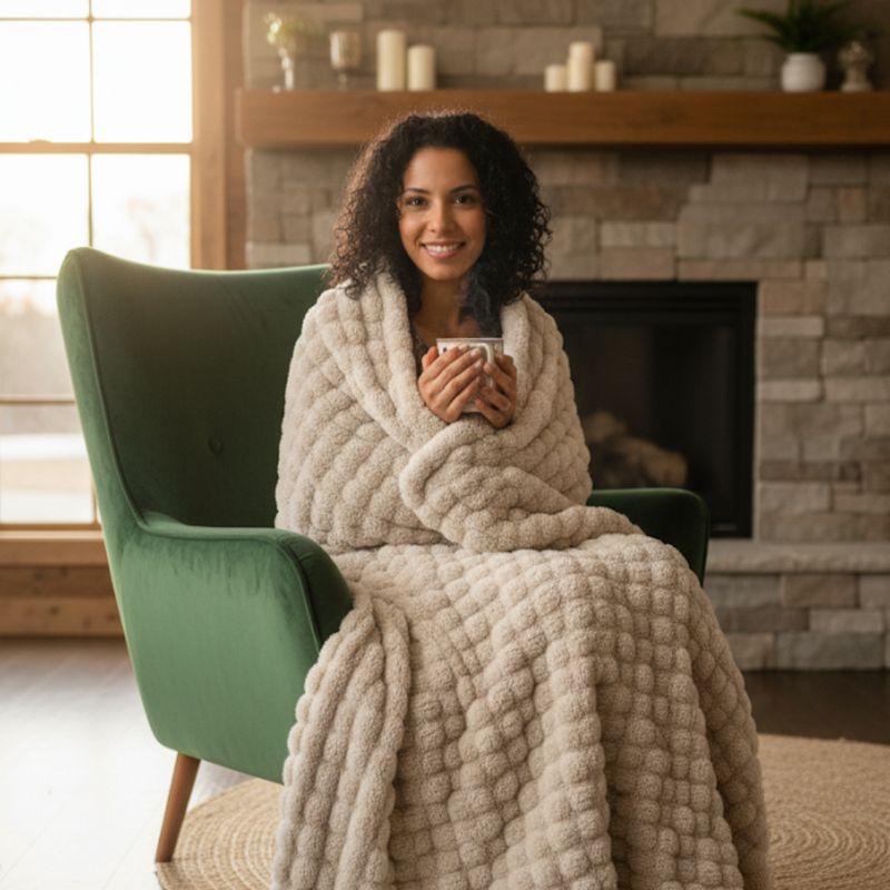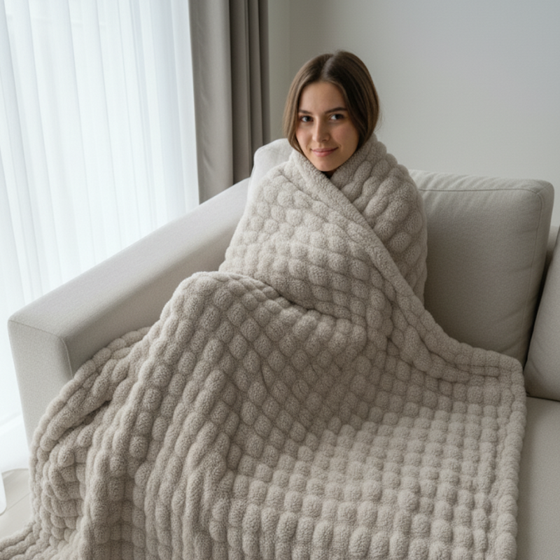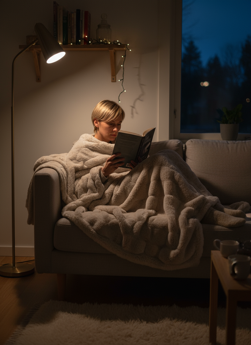 Double Hug™ er skabt til at give ro i kroppen. Det tunge, 4 kg tæppe omslutter dig som et trygt kram – alene eller delt med én du holder af.